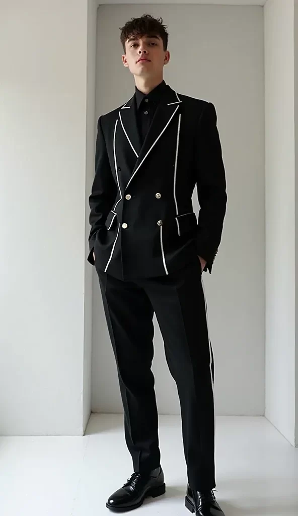 Un diseño que redefine la elegancia contemporánea. El saco Laurenttino Black Edition combina la distinción del traje clásico con un innovador acabado en piping blanco que realza cada línea de la prenda. Confeccionado en corte slim fit, destaca por su doble botonadura metálica, solapas estilizadas y caída impecable que aporta porte y presencia en cualquier ocasión.